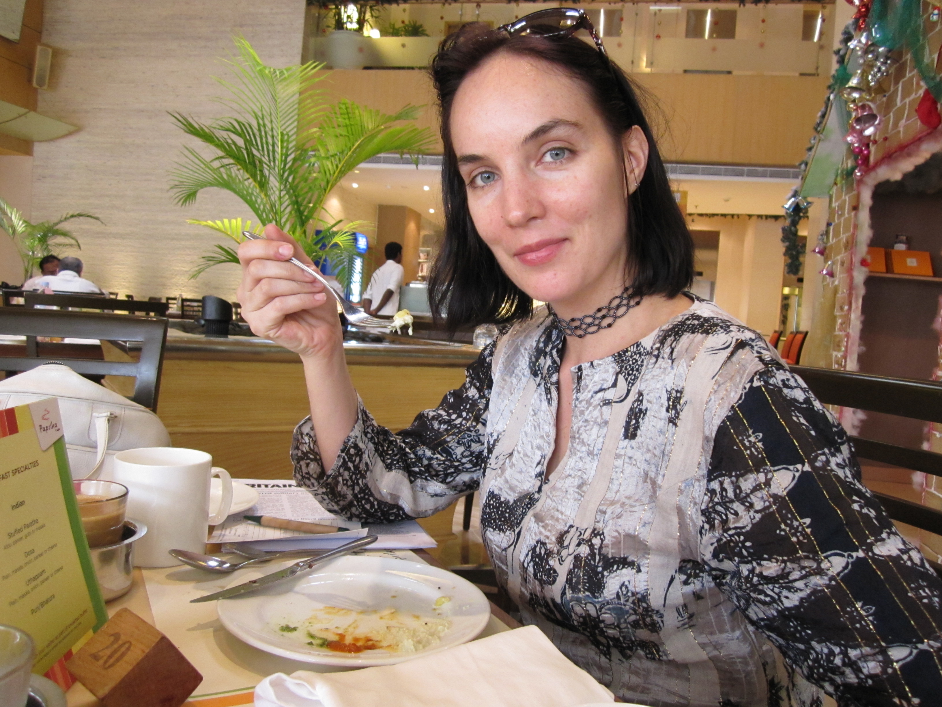 I arrived in Chennai just before 3,this morning and returned to the airport with my driver to pick up Elizabeth, arriving from Kuala Lumpur at 7:30. It has been over 3 years! She looks wonderful, has thrown away her crutches (but not her cast), yet imho remains far too thin (I will make her eat more “Plate of Pancake” and Dosa, this week).