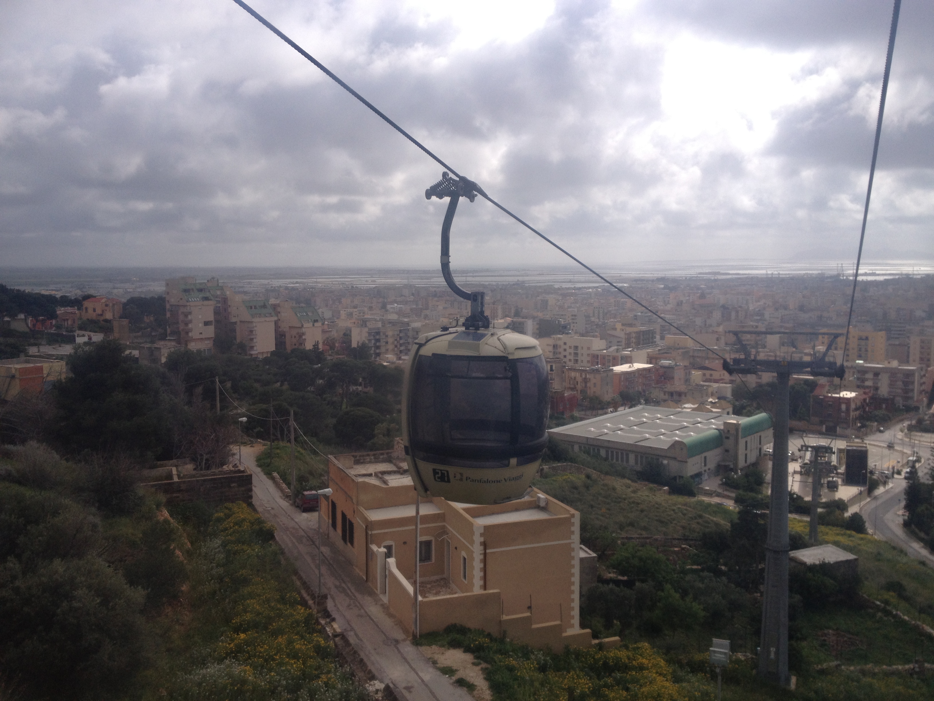 Gondola, on the 750m trip up to Erice. Remember to double-click on this photo, so you can count all the other people who made the trip up and down the mountain with us today. Hint: it’s less than one.