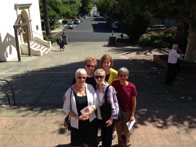 With some of our Dominican set-mates, not all, who met in San Rafael for the 50th Jubilee. Among those present but missing from this photo are Cathy, Pat – our Jubilarian – and Sr. Jeremy, our novice mistress from [gulp]1963.