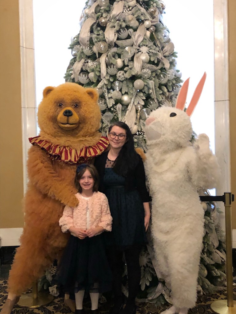 E. With her 2 mentors — in one of the (many) rooms in the studio.