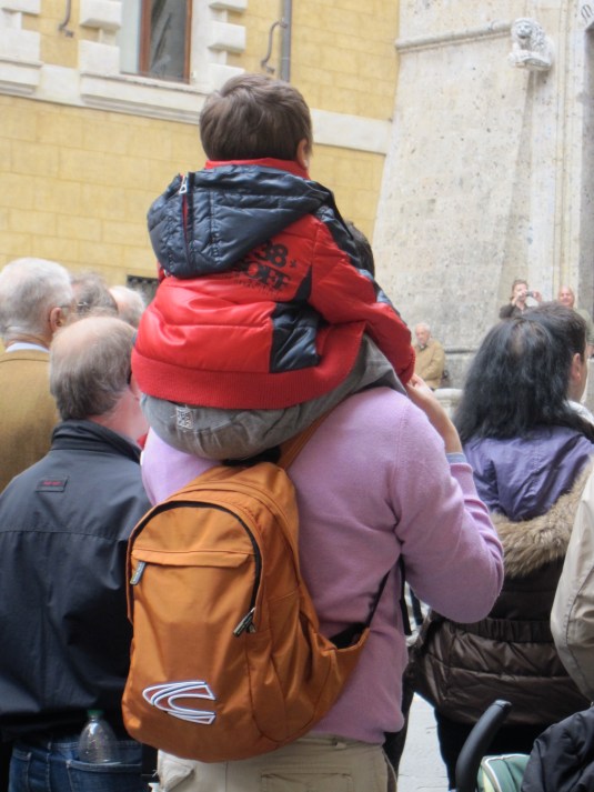 These moms and kids from the contrada of Tortuga have some the best seats in the house!