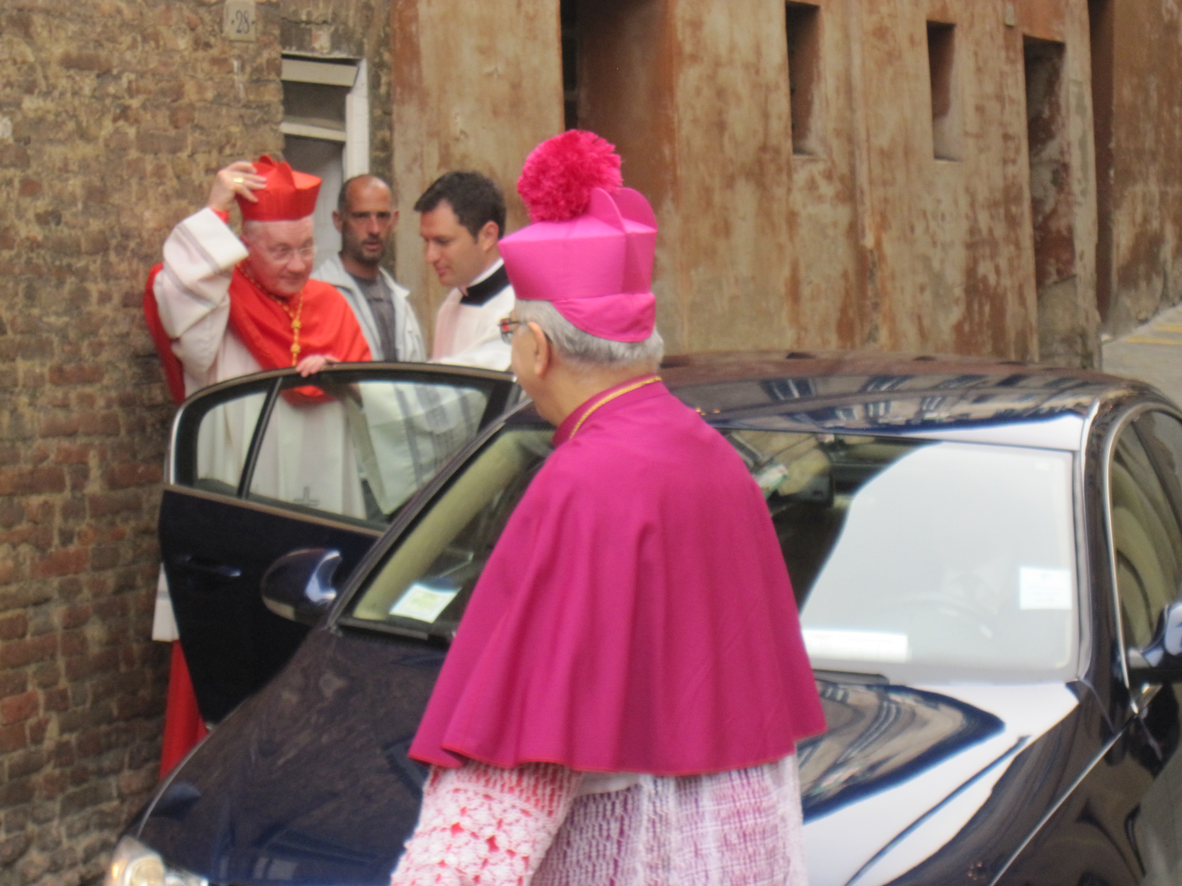 Before Mass, the cardinal and the Dominican prior knelt before the head of Saint Catherine.