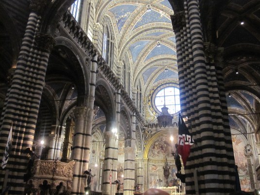 The interior of the Duomo mirrors the travertine stripes on the exterior.