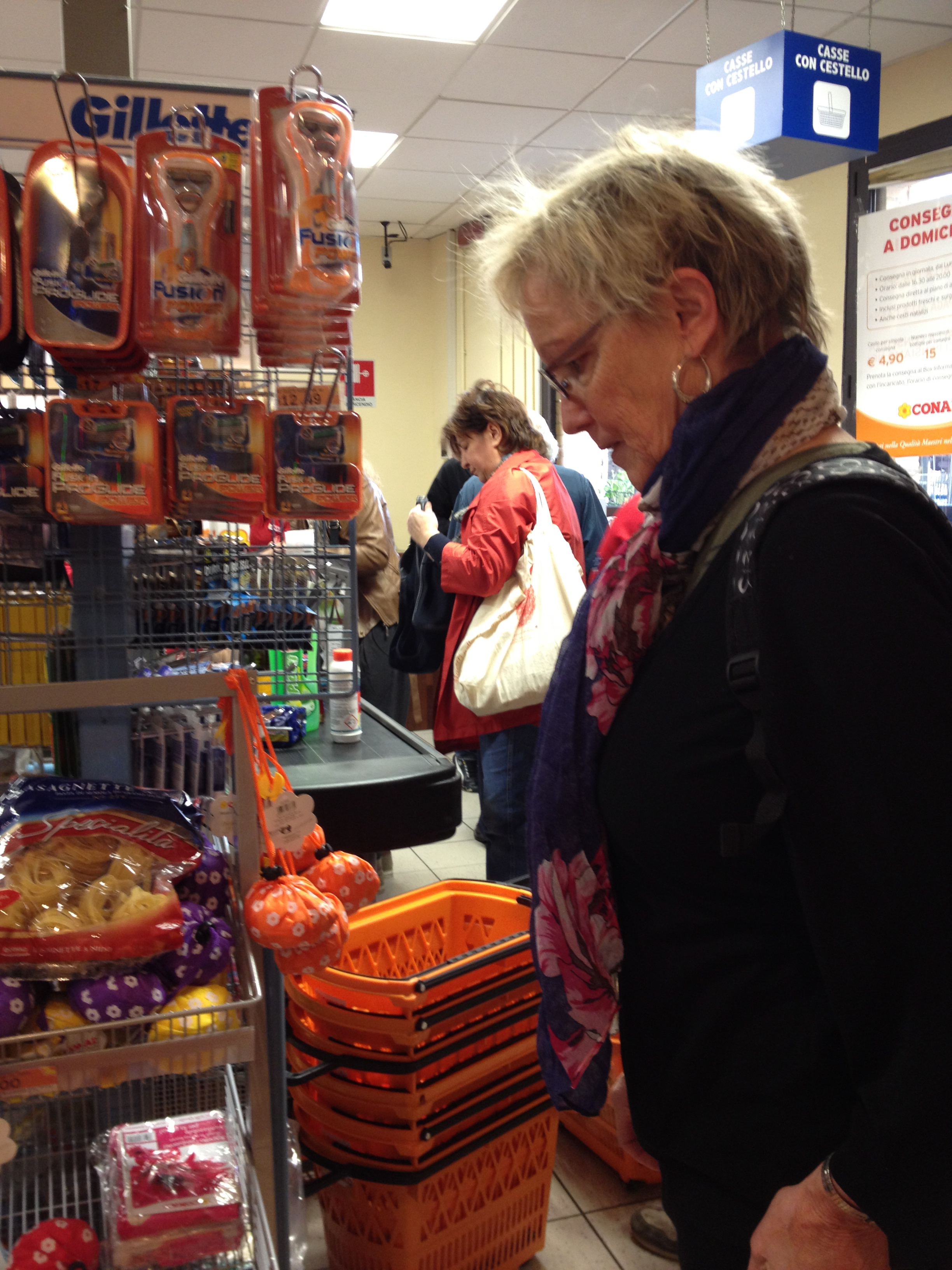 EVERYBODY shops at Conad: waiting in line, wondering if all the Prosecco and all the bruschetta-makings and all the cheese will fit into our 2 backpacks…