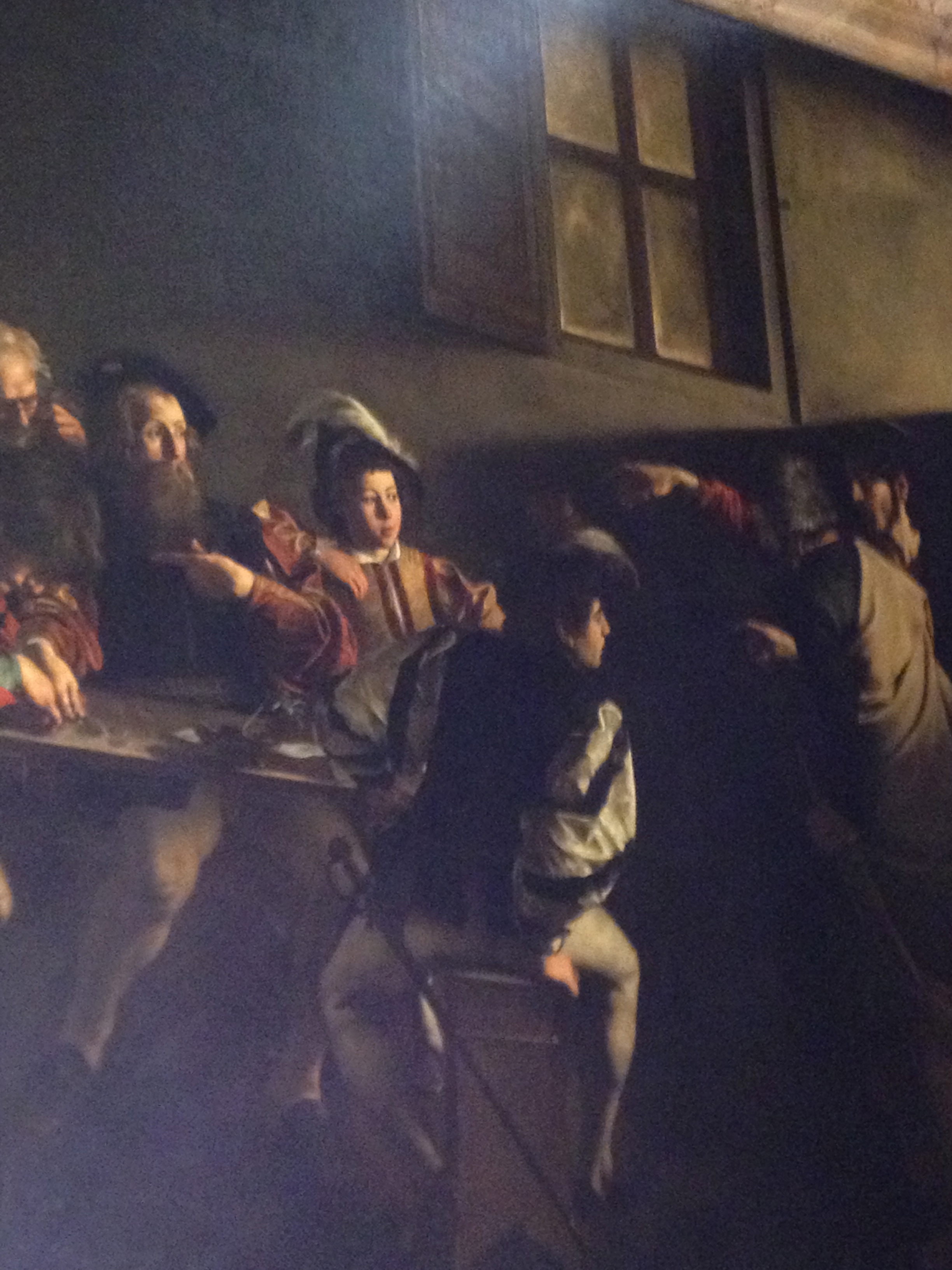 After that, I ran over to the Contarelli Chapel in S. Luigi dei Francesi to see this Caravaggio for Matthew: